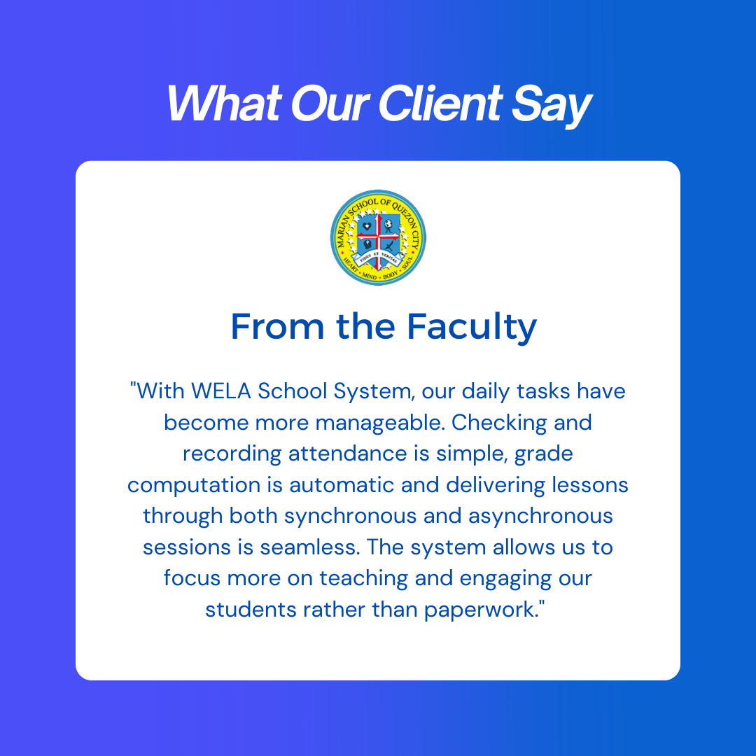 Marian School of Quezon City stands as a testament to how the right technological partner can transform school operations from the ground up. By moving away from rigid, legacy systems and embracing the adaptability of Wela+, the school has secured a reliable and user-friendly solution that meets the needs of all stakeholders