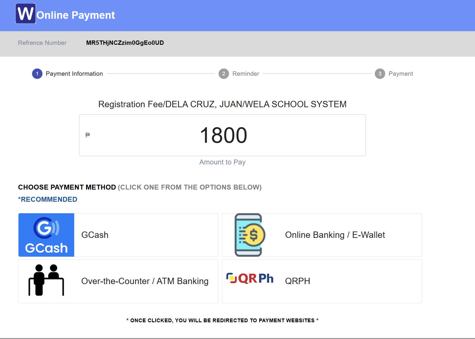 This allows parents to pay quickly using familiar and trusted digital wallets.